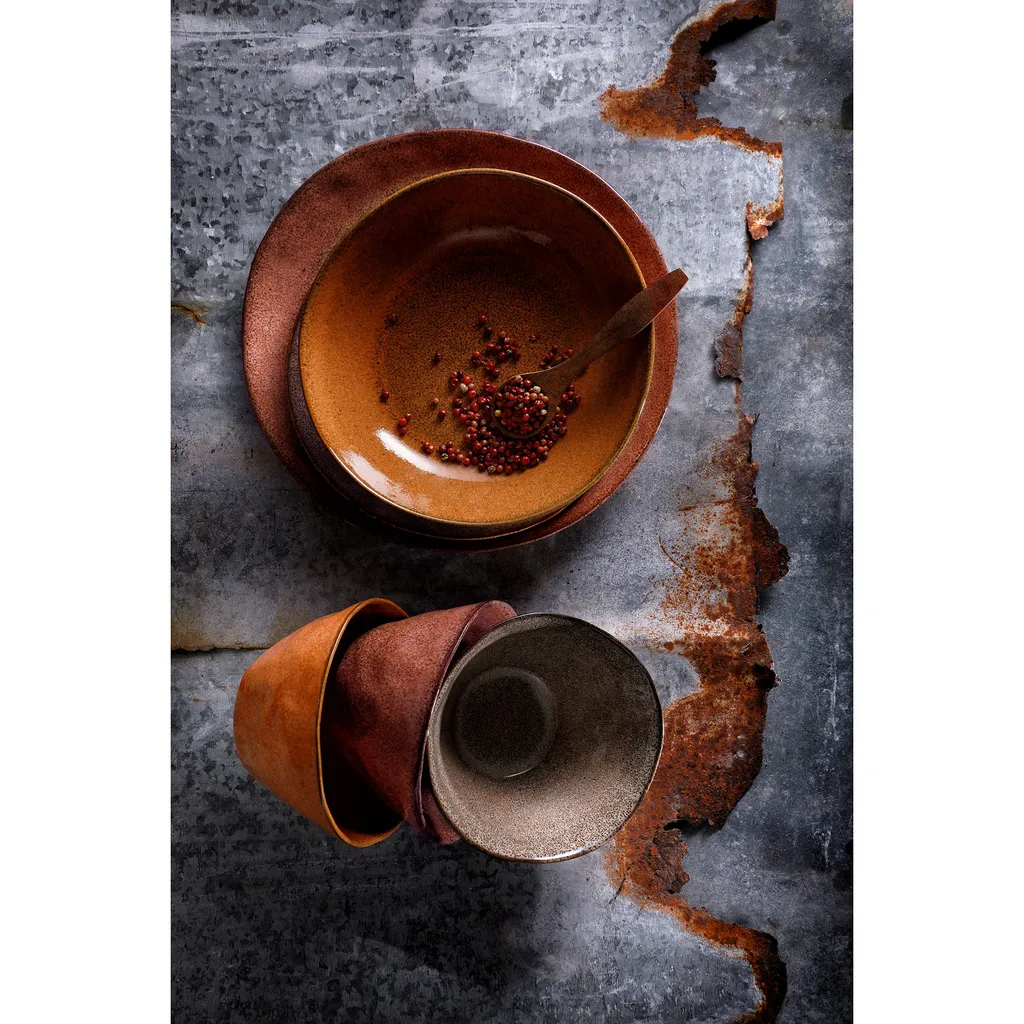 Ländlich, grober, bäuerlicher Stil und doch im gewissen trendigen Vintage-Look, so kennzeichnen sich die Steingut Geschirrteile der Serie Rustique in 10 kombinierbaren Farben. Alle Teller, Schalen und Schüsseln sind in sich ein Unikat, weil sie nach doppelter Brenndauer im Ofen einer reaktiven Glasur unterzogen wurden. Das Rustique Geschirr der Marke Palmer hat eine lebendige Ausstrahlung, passt sich harmonisch in sowohl moderne als auch rustikale Tafel-Arrangements ein. Mit seiner robusten, gewollt unregelmäßigen Machart hebt es sich vom Mainstream ab und wird sicher im Gedächtnis bleiben.