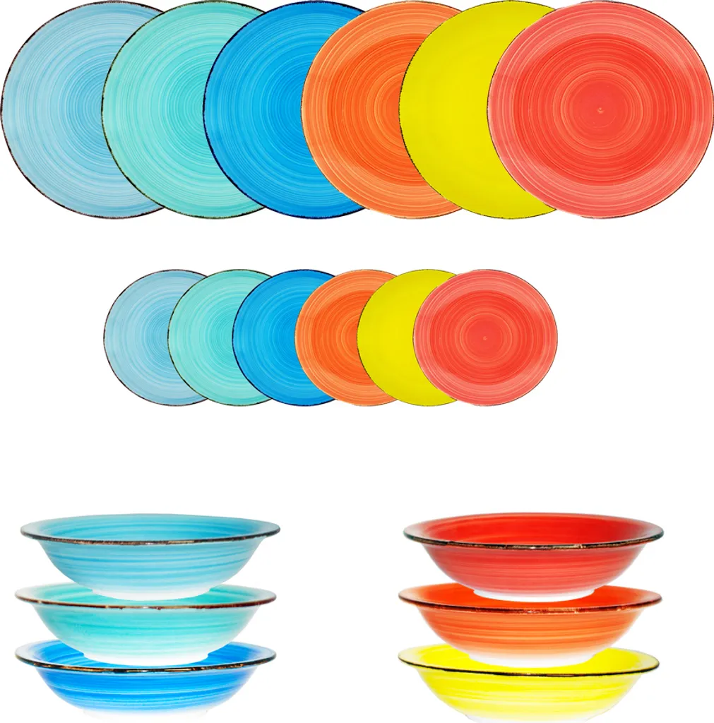 Die unterschiedlich farbigen Dessertteller, Speiseteller und Suppenteller sind alltagstauglich und ideal für Ihren Frühstücks-, Mittags- & Abendtisch
