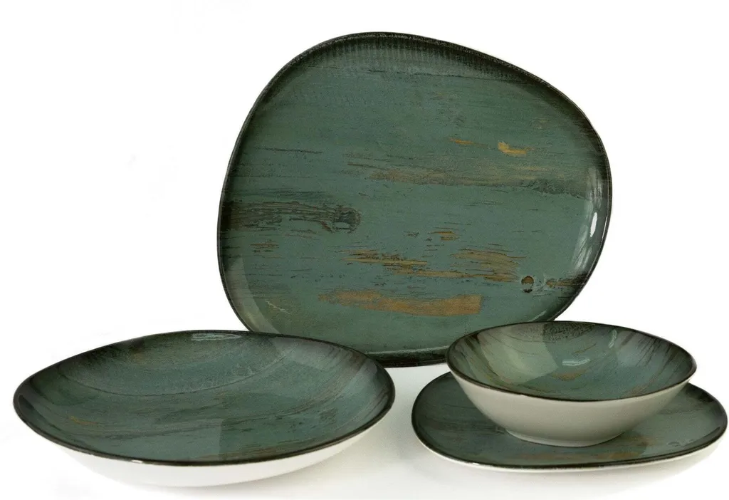 Mit der überraschenden Harmonie von Grün und leuchtenden Kupfertönen spricht Madera Mint Collection Köche an, die auf der Suche nach einer anderen und ambitionierten Spielwiese für ihre Präsentationen sind. Mit beeindruckenden Tonübergängen und zufälligen Crack-Effekten stärkt die Kollektion den Hintergrund, der das Essen begleitet; überlässt aber trotz seiner intensiven und dominanten Präsenz dem Essen selbst die Szene.