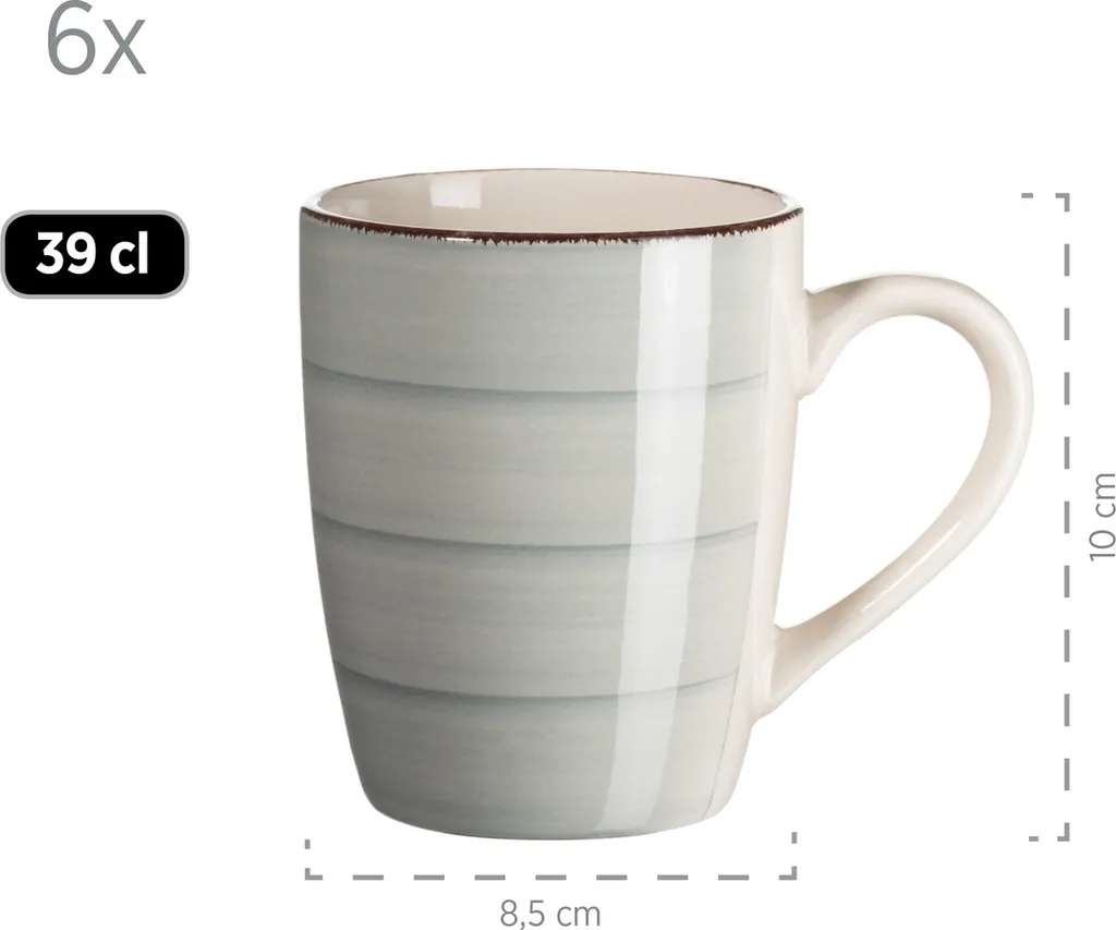 - ‚Dieses Frühstücksset besteht aus 6 großen Kaffeetassen (390 ml), 6 Müslischalen und 6 Dessert-Tellern in der Farbe Blau. Gerne wird es auch als modernes Kaffeeservice eingesetzt