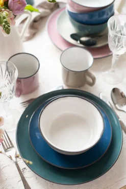 - Dieses 12-teilige Essgeschirr Set für 6 Personen aus hochwertigem Keramik in kräftigem, gesprenkeltem Blau besteht aus 6 x Essteller flach (Ø 27,5 cm) und 6 x Suppenteller tief (Ø 22 cm, 900 ml Füllmenge)_x000D_
