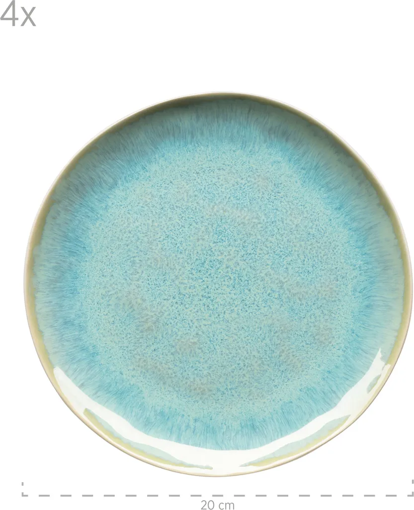 - Alle Teile sind außen in Weiß glasiert und innen wunderschön händisch in Nuancen von Grün und Türkis gesprenkelt. Die unregelmäßige Farbsprenkelung macht jedes Teil in diesem Geschirrset zu einem Unikat. Durch die randlose Formgebung mit unregelmäßiger Umrandung zaubert dieses Essservice eine skandinavische Atmosphäre auf Ihren Esstisch, die modern und rustikal zugleich anmutet_x000D_
