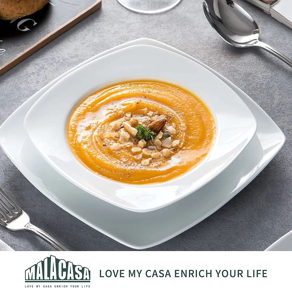 - EINHALTUNG DER TRADITIONELLEN HÖCHSTEN HANDWERKSKUNST | Hochwertige Porzellanselektion, einzigartige und künstlerische Verglasungstechnologie sorgen dafür, dass jeder Teller leicht und dünn aussieht und im tatsächlichen Gebrauch langlebig ist. Beinhaltet 12x Flachteller [9,5″/23,5*23,5*2cm] & 12x Suppenteller [8″/20*20*3,8cm] & 12x Dessertteller [6,5″/16,7*16,7*2cm]