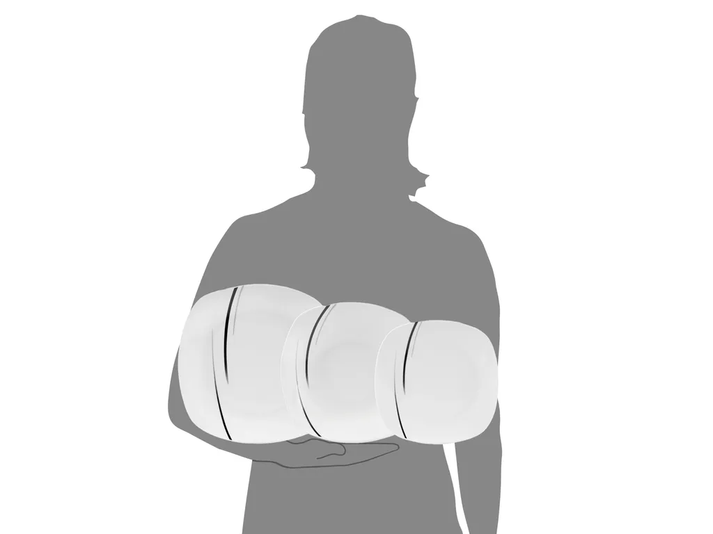 Das Geschirrset beeindruckt durch weiße Porzellanteller mit fein abgestimmten Formenspiel aus rund und eckig. Zusammen mit den auslaufenden Linien wirkt das Set sehr schick und elegant und lässt sich wunderbar mit den Erweiterungen dieser Kollektion kombinieren