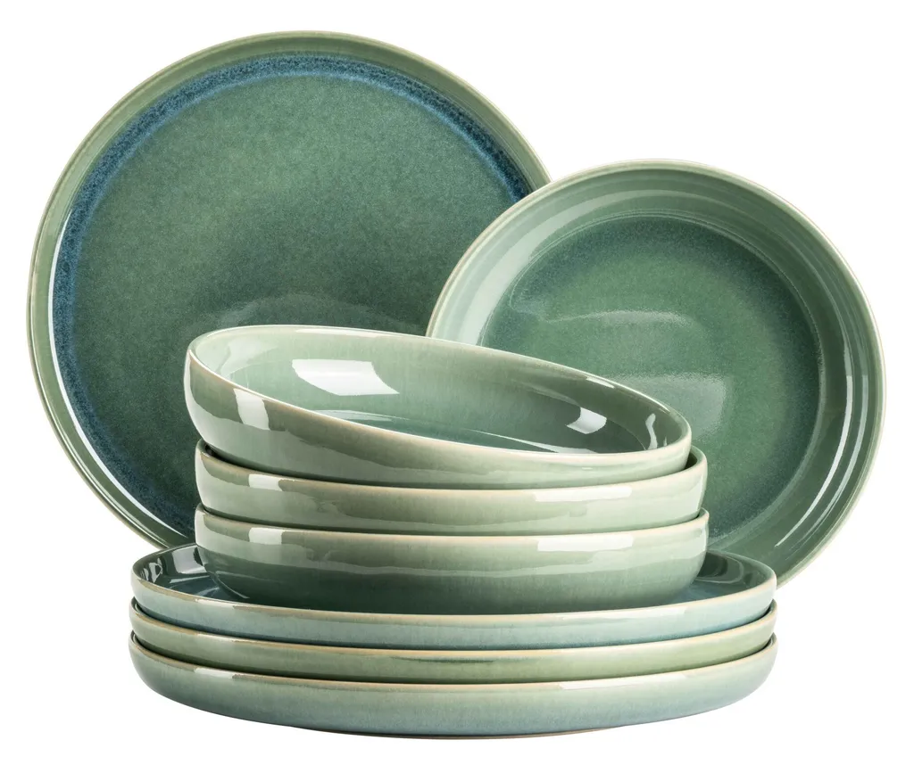 Aufregende Naturfarbtöne in verschiedenen Farbwelten fließen auf der Steinzeuggeschirr-Kollektion „Elina Uno“ der österreichischen Traditionsmarke MÄSER ineinander und bilden auf jedem Teller, jeder Tasse und jeder Schale ein einzigartiges Muster aus, welches je nach Lichteinfall in unterschiedlichen Nuancen schimmert. Die besondere Glasurtechnik dieser außergewöhnlichen Essgeschirr-Serie macht jedes Teil zu einem echten Unikat. Die beiden Farbwelten Jungle und Beach lassen sich harmonisch miteinander kombinieren und bringen ein unvergleichliches tropisches Feeling auf Ihren Esstisch. Mit ihren großzügig-schlichten skandinavischen Formen bietet die Serie „Elina Uno“ viel Raum für Ihre kulinarischen Kreationen sowie für Dekoration.