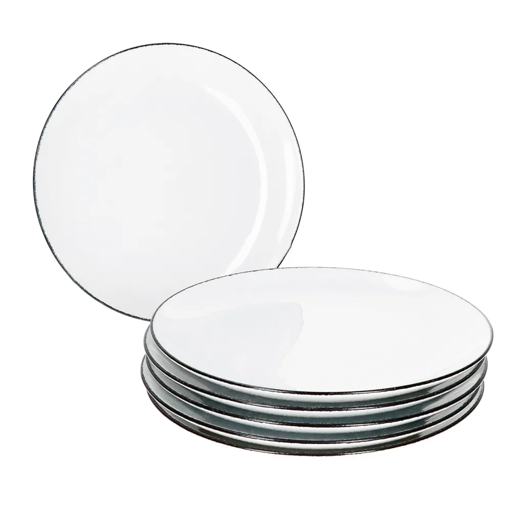 - Das hübsche Set überzeugt durch sein schlicht weißes Design und den schwarzen Pinselstrich, der sich entlang der oberen Kante von jedem Einzelteil zieht
