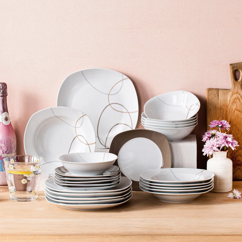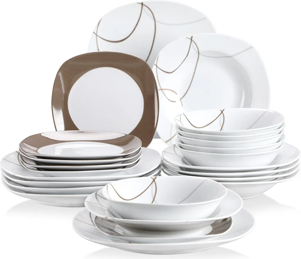 VEWEET Tafelservice ‚Nikita‘ Aus Porzellan, 24 Teilig Geschirrset Beinhatlet Müslischalen, Dessertteller, Speiseteller Und Suppenteller, Geschirrservice Für 6 Personen